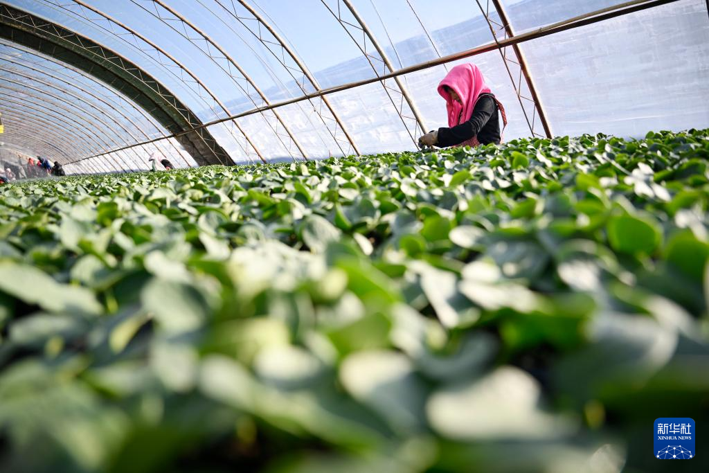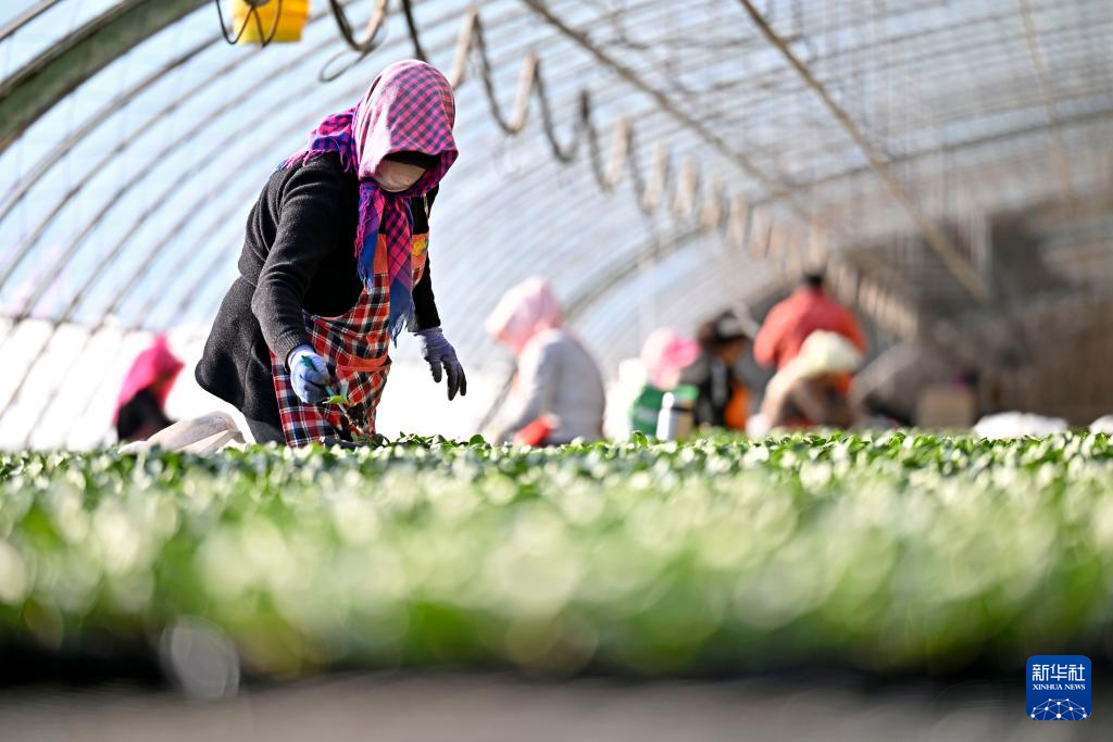 新春伊始,寧夏銀川市賀蘭縣育苗基地迎來節后育苗生產季,工作人員加緊培育各類瓜果蔬菜幼苗,為即將到來的春耕、春播做足準備。新華社記者 王鵬 攝