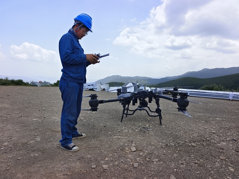 固原供電公司帶電作業人員趙通準備操控載重無人機進行作業。劉輝 攝