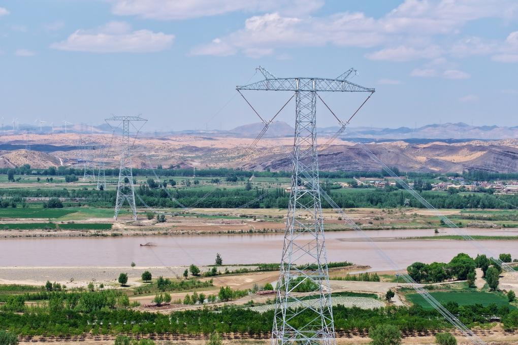 寧夏至湖南±800千伏特高壓直流輸電工程線路跨越黃河。(受訪者供圖)