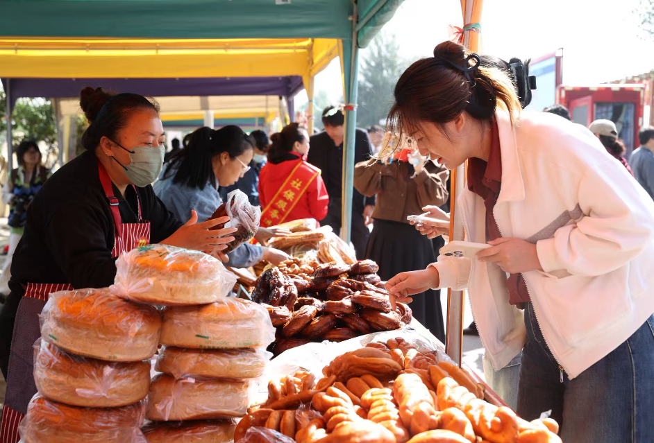 鄉村旅游作為連接城鄉、激活鄉村資源的關鍵紐帶,正成為推動鄉村產業振興的核心力量。豐收節現場,特別設計2條“豐收體驗動線”,依托東永固村“枸杞種植+加工+觀光”全產業鏈,以“枸杞采摘→小米脫?!叻謷钡霓r業生產線和以“石磨面粉→手工饃饃制作”的美食體驗線,吸引了前來參會的游客沉浸式體驗和互動?,F場還發放了3萬元代金券,廣大農民朋友和市民可在豐收節現場購買石嘴山好物。